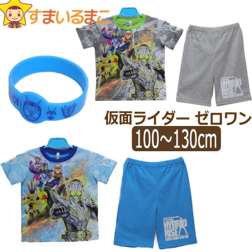 仮面ライダーゼロワンのキャラクターがプリントされた、暗闇で光る勇気リング付き半袖シャツと半ズボンの上下2点セット/ルームウェア♪