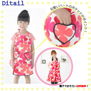 お母さんとペアでコーディネイトできるかわいいクローバー柄エプロン。
